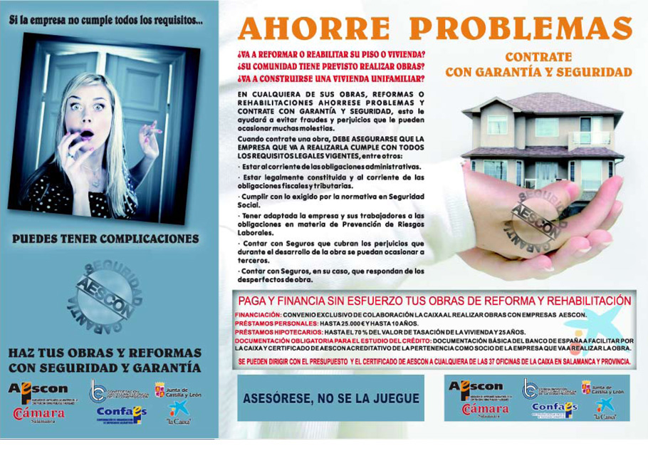 La intervención de AESCON se limita a comprobar que en el momento de incluir a la empresa contratista en la «relación de empresas con sello de garantía» ésta reune todos los requisitos legales para actuar en el mercado, sirviendo únicamente de medio de comunicación y publicidad entre éstas y los posibles destinatarios de sus servicios. Por lo tanto, la presente relación no exonera al promotor de la obra de su obligación de verificar el cumplimiento de todas las exigencias legales por parte del contratista elegido.